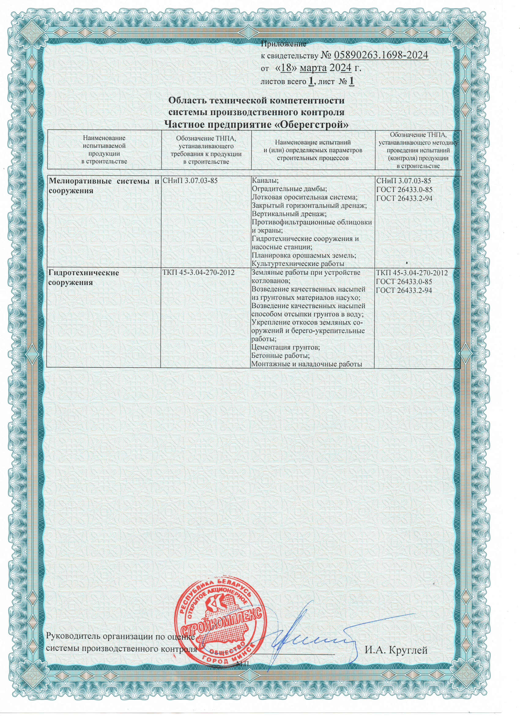 Работаем по разработанным РУП "ОРГСТРОЙ" технологическим картам, что подтверждает качество выполненных работ.